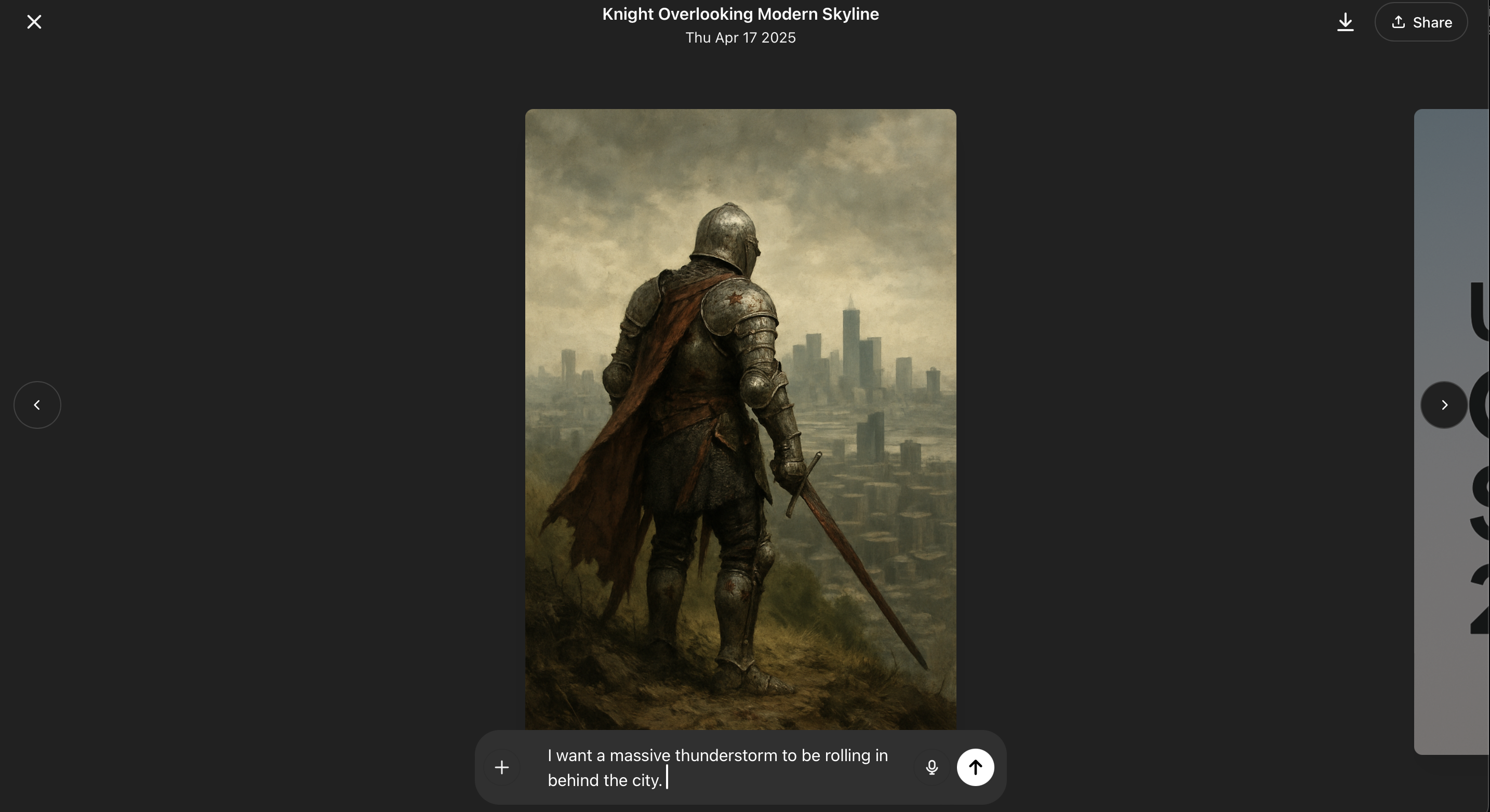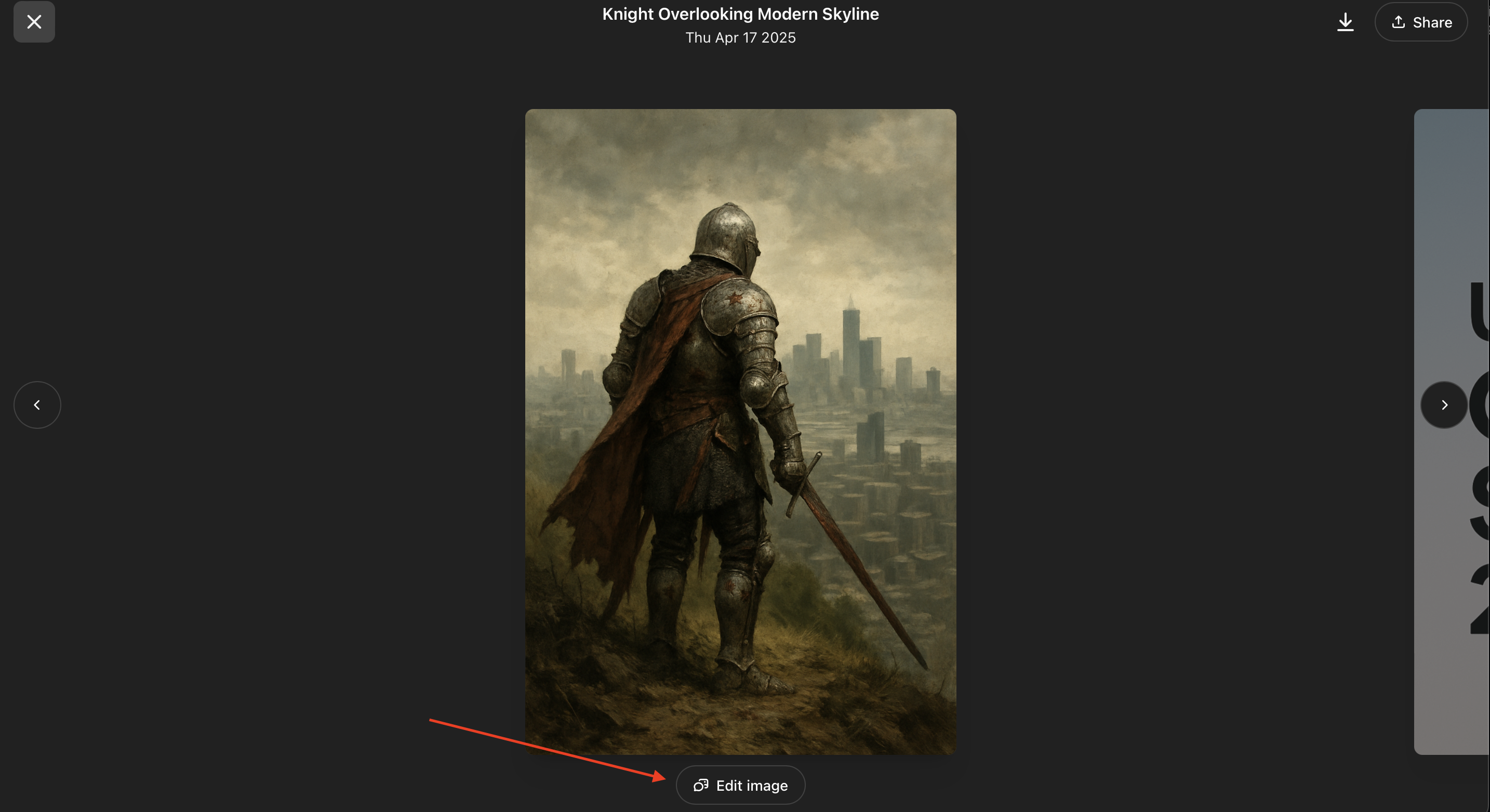 - Edit: Opens the image in a new chat where you can provide prompts for modifications